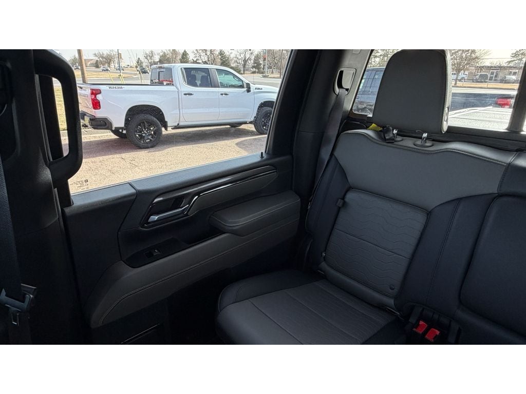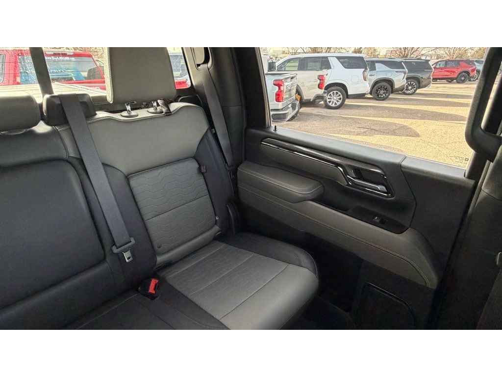 Dark Essentials Package: Black Name Plates; Front Black Bowtie Emblem; Black Tailgate Lettering. Technology Package: 15" Diagonal Multicolor Head-Up Display; Rear Camera Mirror; Adaptive Cruise Control. Preferred Equipment Group 3LT: Perforated Leather Seat Trim; SiriusXM with 360L; Power Sliding Rear Window with Defogger; Trailer Camera Provisions; Electric Rear-Window Defogger; Rear Park Assist; Unauthorized Entry Theft-Deterrent System; Front Rain-Sensing Wipers; Heated Steering Wheel; 120-Volt Interior Power Outlet; LED Smoked Amber Roof Marker Lamps; Wireless Charging; Front Bucket Seats; Color-Keyed Carpeting Floor Covering; OnStar and Chevrolet Connected Services Capable; Heated 2nd Row Outboard Seats; Power Front Windows with Passenger Express Up/down; LT305/70R18-126/123R 35" Mud Terrain Tires; High Gloss Black Mirror Caps; Power Rear Windows with Express Down; Manual Tilt and Telescoping Steering Column; Keyless Open and Start; Auto-Dimming Inside Rearview Mirror; Push Button Start; LED Cargo Area Lighting; Durabed Pickup Bed; Bluetooth For Phone; Remote Vehicle Starter System; In-Vehicle Trailering App; 170 Amp Alternator; Bed View Camera with Two Trailer Camera Provisions; Wireless Phone Projection; Up-Level Rear Seat with Storage Package; Standard Tailgate; Rear Cross Traffic Alert; Front LED Fog Lamps; Steering Wheel Audio Controls; Chevrolet Connected Access Capable; Universal Home Remote; 120-Volt Bed Mounted Power Outlet; Deep-Tinted Glass; All-Weather Floor Liners; Black Chevytec Spray-On Bedliner; Electronic Cruise Control with Set and Resume Speed; Hitch Guidance with Hitch View; Power Front Windows with Driver Express Up/down; Wrapped Steering Wheel; Compass; Power Up/down Tailgate Function with Power Lock and Release; Wi-Fi Hotspot Capable; Rear Wheelhouse Liners; Power Door Locks. Power-Retractable Black Assist Steps. Power Sunroof. Gooseneck/5th Wheel Prep Package. Multi-Flex Tailgate. Front Black Bowtie Emblem (LPO). **Equipment listed is based on original vehicle build and subject to change. Please confirm the accuracy of the included equipment by calling the dealer prior to purchase.**