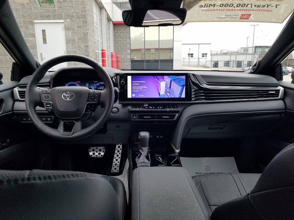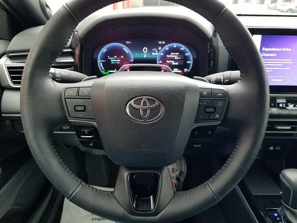 This mid-size car enhances safety with a blind spot monitor, alerting drivers to potential dangers in adjacent lanes. This vehicle is pure luxury with a heated steering wheel. See what's behind you with the back up camera on this mid-size car. Apple CarPlay: Seamless smartphone integration for it - stay connected and entertained on the go! This Toyota Camry Hybrid offers Android Auto for seamless smartphone integration. The leather seats in this unit are a must for buyers looking for comfort, durability, and style. You'll never again be lost in a crowded city or a country region with the navigation system on this model. The Toyota Camry Hybrid features a hands-free Bluetooth phone system. Never get into a cold vehicle again with the remote start feature on the Toyota Camry Hybrid. It warns of approaching vehicles with Cross-Traffic Alert. This 2025 Toyota Camry Hybrid has a 4 Cyl, 2.5L high output engine.