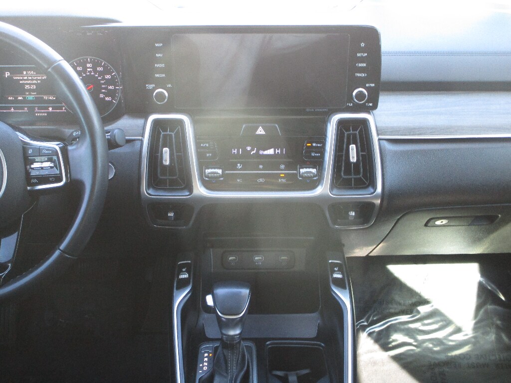 Anti-lock brakes will help you stop in an emergency. Conquer any rainy, snowy, or icy road conditions this winter with the all wheel drive system on the Kia Sorento. Light weight alloy wheels on the Kia Sorento are the perfect compliment to a stylish body. This model offers Android Auto for seamless smartphone integration. Apple CarPlay: Seamless smartphone integration for the Kia Sorento - stay connected and entertained on the go! The vehicle keeps you comfortable with Auto Climate. The Kia Sorento has an automatic transmission. See what's behind you with the back up camera on the Kia Sorento. This unit is painted with a sleek and sophisticated black color. Set the temperature exactly where you are most comfortable in this Kia Sorento. The fan speed and temperature will automatically adjust to maintain your preferred zone climate. This mid-size suv employs advanced tech for collision avoidance, enhancing safety on the road. Easily set your speed in the vehicle with a state of the art cruise control system. Increase or decrease velocity with the touch of a button. The Electronic Stability Control will keep you on your intended path. This unit has a 4 Cyl, 2.5L high output engine. Know you and your passengers are protected with the front and rear side curtain airbags in this vehicle. It has front air bags that will protect you and your passenger in the event of an accident. This unit is equipped with front side curtain airbags. The Kia Sorento is equipped with a gasoline engine. This Kia Sorento features a hands-free Bluetooth phone system. Heated seats for those cold winter days are included in this mid-size suv. With the keyless entry system on this vehicle you can pop the trunk without dropping your bags from the store. This mid-size suv's Lane Departure Warning helps keep you in your lane. It stays safely in its lane with Lane Keep Assist. The leather seats in this vehicle are a must for buyers looking for comfort, durability, and style. Help alleviate lower back pain with the driver seat lumbar support in this mid-size suv. The spacious cabin accommodates your family and friends in comfort. Take it to the mountains or the beach. this 2022 Kia Sorento can handle it all. You'll never again be lost in a crowded city or a country region with the navigation system on this Kia Sorento. A front power adjustable seat increases driver comfort. The rear parking assist technology on this Kia Sorento will put you at ease when reversing. The system alerts you as you get closer to an obstruction. This Kia Sorento is accented with a stylish rear spoiler. Start this mid-size suv from inside with remote start. This mid-size suv is built for driving comfort with a telescoping wheel. The traction control system on this vehicle instantly senses tire slippage and executes minute power adjustments to maintain traction at all speeds. This unit is equipped with the latest generation of XM/Sirius Radio.