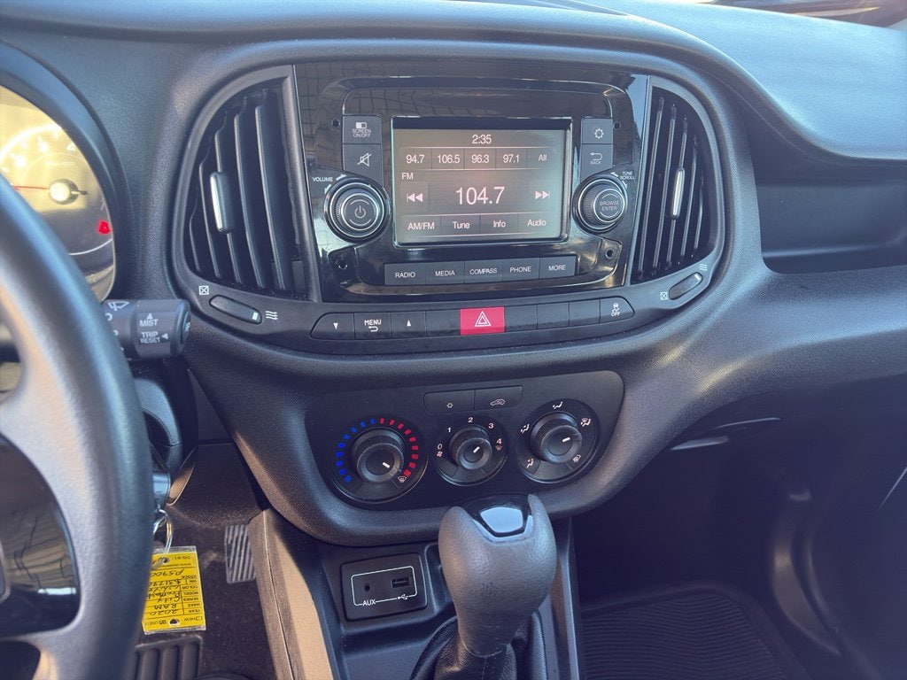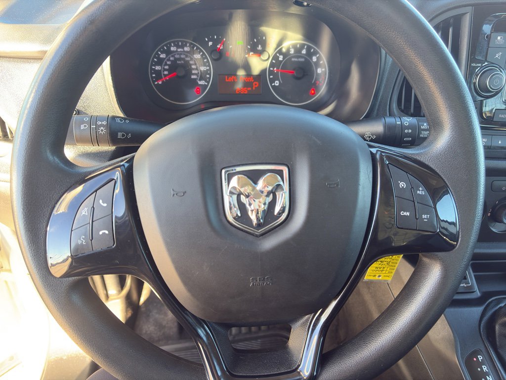 The state of the art park assist system will guide you easily into any spot. This model features a hands-free Bluetooth phone system. See what's behind you with the back up camera on this unit. This model is front wheel drive. This model has a 4 Cyl, 2.4L high output engine. This vehicle embodies class and sophistication with its refined white exterior. Set the temperature exactly where you are most comfortable in this Ram ProMaster City. The fan speed and temperature will automatically adjust to maintain your preferred zone climate. This Ram ProMaster City is equipped with front side curtain airbags. This vehicle is equipped with a gasoline engine. The high efficiency automatic transmission shifts smoothly and allows you to relax while driving. Electronic Stability Control is one of many advanced safety features on the vehicle. This mini van is equipped with front air bags. Easily set your speed in this model with a state of the art cruise control system. Increase or decrease velocity with the touch of a button.